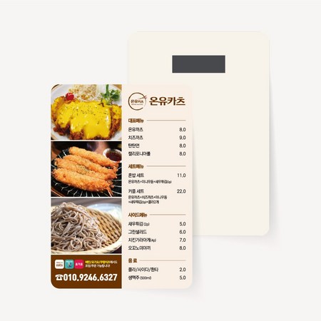 | 일반지 | 가격이 저렴하고 인쇄성이 좋음. 코팅 유무에 따라 광택감이나 필기감이 달라짐. | 대량 제작이 필요하거나, 캐주얼한 분위기의 식당 (분식점, 키오스크 중심 식당 등) |