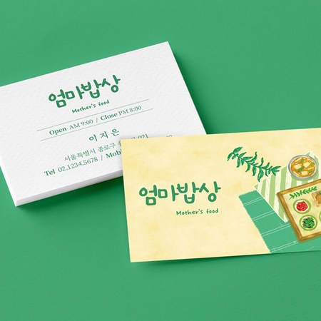 자연 친화적인 이미지를 강조하는 비건 레스토랑, 유기농 카페, 건강식 전문점 등에 안성맞춤입니다. 빈티지하면서도 따뜻한 느낌을 주며, 식당의 가치를 환경 보호와 연결하여 고객에게 더욱 깊은 공감을 불러일으킬 수 있어요. 독특하고 감성적인 식당명함제작을 원한다면 추천해요. -