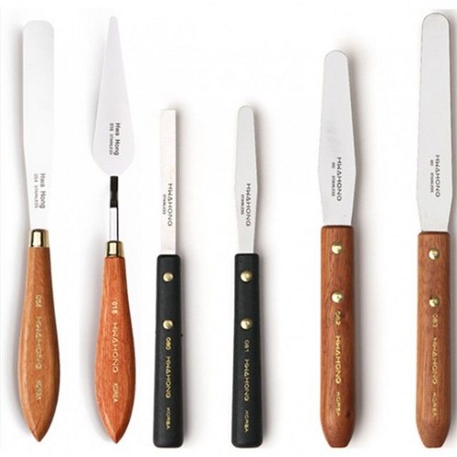 - νμΈν λμ΄ν (Painting Knife): κ°μ₯ μΌλ°μ μΈ ννμ΄λ©°, λμ νκ³ μ μ°ν λ μ κ°μ§κ³ μμ΅λλ€. λ¬Όκ°μ μκ±°λ μΊλ²μ€μ λκ² ν΄ λ°λ₯΄κΈ°μ μ ν©ν©λλ€. π¨